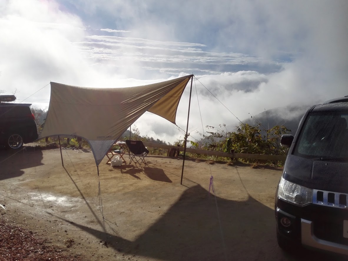 撤収もほぼ終わり。あとは霧が晴れるのを待つだけ。